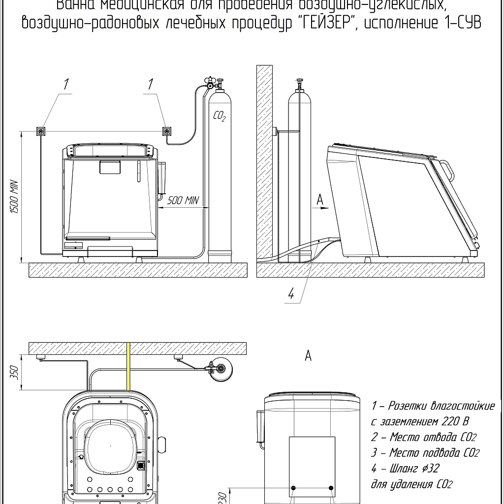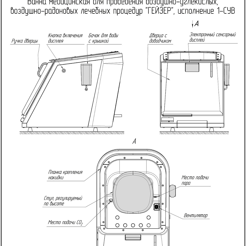 Ванна медицинская для проведения воздушно‑углекислых и воздушно‑радоновых лечебных процедур «Гейзер»