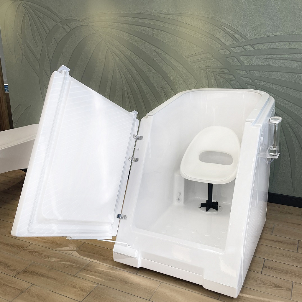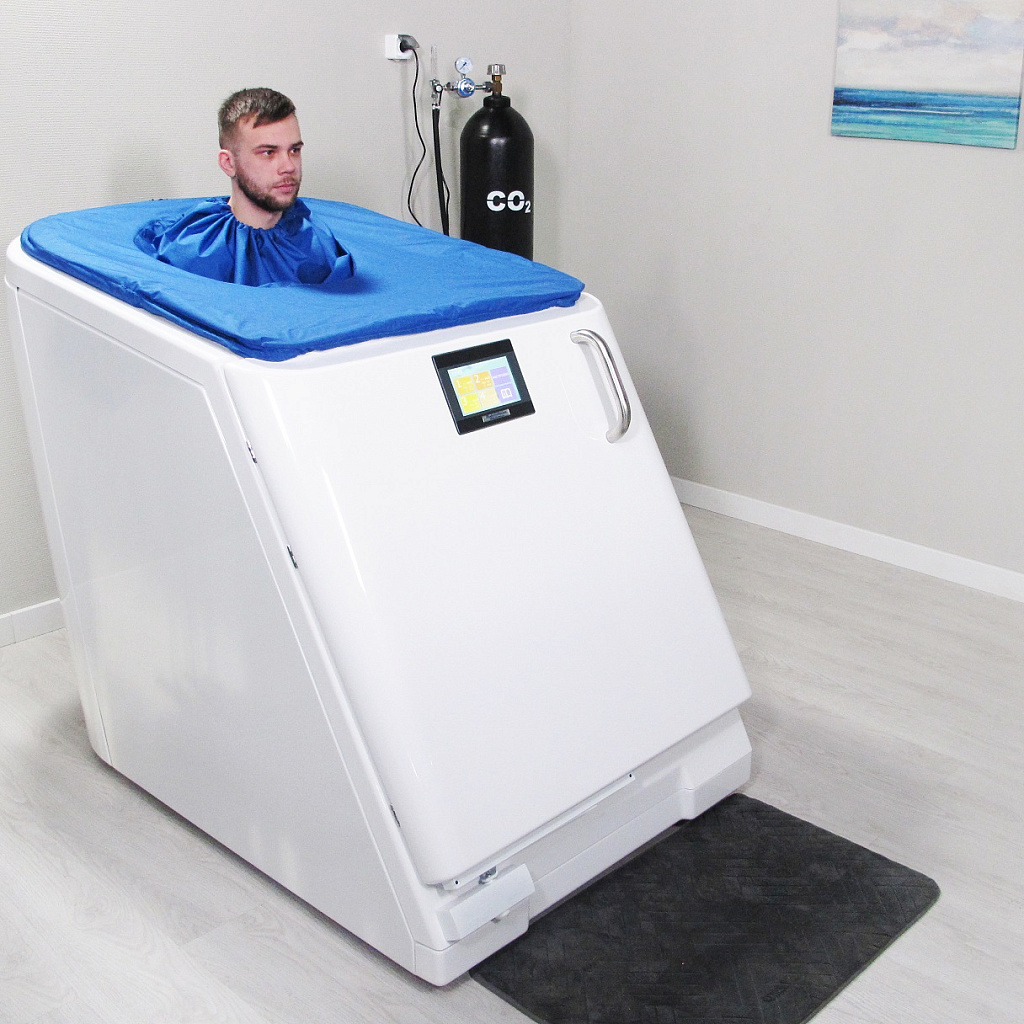 Медицинское изделие с регистрационным удостоверением Минздрава РФ (номер предоставляется по запросу). Профессиональная сухая углекислая/радоновая ванна‑кабина российского производства для проведения воздушно‑углекислых и воздушно‑радоновых лечебных процедур. Пациент размещается сидя в герметичной кабине, при этом голова находится снаружи – газ воздействует только на тело, без контакта с водой. Подогрев и увлажнение внутренней поверхности усиливают терапевтический эффект. Подходит для оснащения медицинских центров, реабилитационных клиник, санаториев, кардиологических центров, физиотерапевтических отделений.